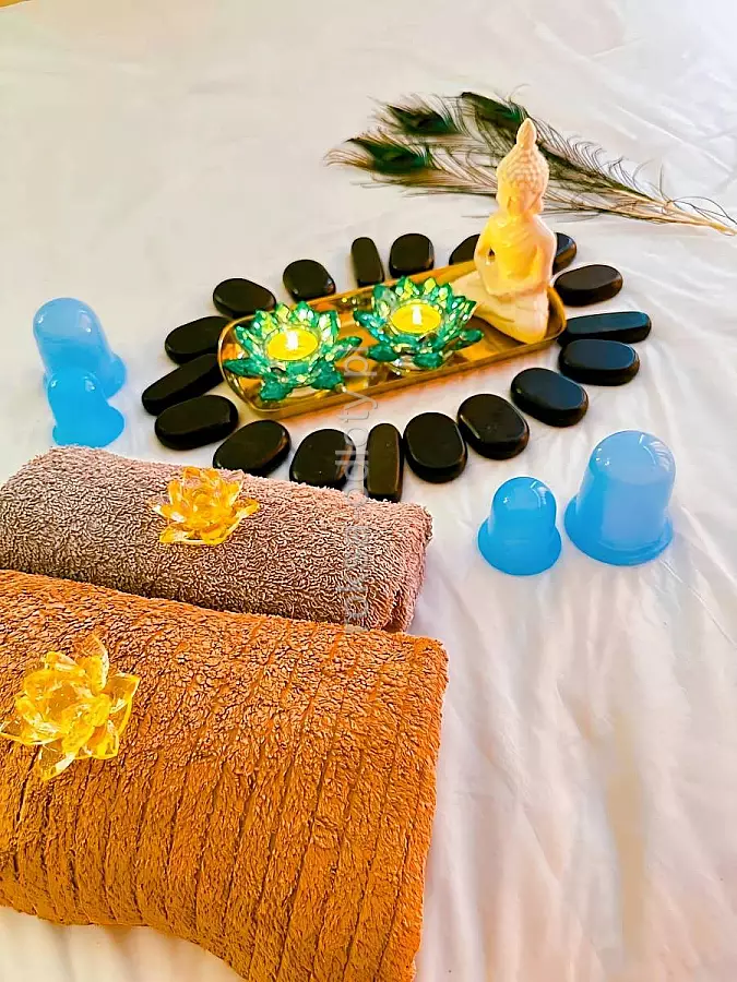 Body to body z dotykiem oraz pocałunkami mojego ciała (bez dolnej strefy intymnej,ust), 2 Lingam, masaż klasyczny oraz rytuał terapii gorącymi kamieniami/ masaż chińskimi bańkami, wspólny prysznic z peelingiem kawowym.